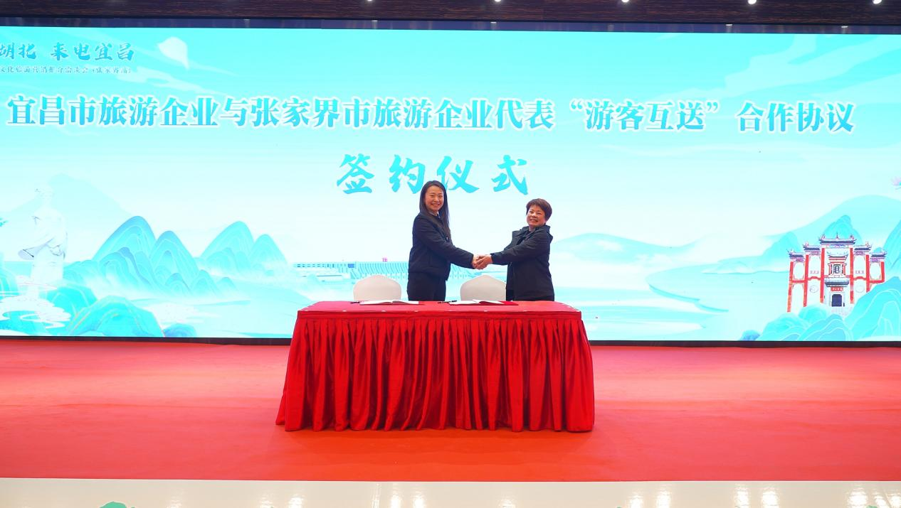 活動現(xiàn)場,湖北三峽文旅集團旅行服務公司與張家界中國旅行社股份有限公司簽訂合作協(xié)議,三峽文旅集團海峽國旅、三峽旅游集團交運國旅與張家界博客國際旅行社有限公司、湖南旅游張家界公司簽署“游客互送”合作協(xié)議。兩地文旅企業(yè)圍繞市場拓展、區(qū)域聯(lián)動、線路設計等展開熱烈交流討論。